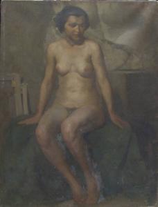 - NOTIZIE STORICO CRITICHE Il dipinto dovrebbe essere stato realizzato nel 1926 in occasione del Premio Hayez, come è indicato nell'iscrizione sul retro del telaio. Già nell'anno precedente, il Cavagnino aveva potuto accedere alla pensione Hayez con un'opera analoga a questa, "Mezza figura di donna seminuda" perchè l'autore "manifesta una serietà di intenti che promette bene. Ha cura del disegno e rispetto del vero". La tela in questione, rappresenta tuttavia una donna a figura intera, rendendo ardua l'identificazione. Ancora nel 1931, come dimostrano le fonti documentarie, insolitamente, l'artista aveva ottenuto di nuovo la pensione, per cui può essere plausibile l'ipotesi di ricollegare questa tela a tale circostanza, anche se, pare tuttavia difficile, ritenere che l'artsita a tale data fosse ancora legato ai modi scolastici.