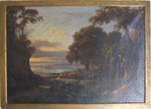 - NOTIZIE STORICO CRITICHE Il dipinto, databile intorno ai primi anni Trenta dell'Ottocento e caratterizzato da un impianto compositivo "alla lorenese" con orizzonte lontano e due quinte delimitanti lo spazio, risente inequivocabilmente delle suggestioni romane sia degli italiani Gianbatista Bassi e Luigi Basiletti che degli stranieri Jakob-Philipp Hackert, Pierre Athanase Chauvin e Martin Verstappen. Si tratta qui di un paesaggio d'invenzione dove la lezione fiamminga viene mediata dalla concezione del "bello ideale" nella pittura di paesaggio teorizzata dal Cicognara. Nei suoi paesaggi il d'Azeglio rifiuta la rappresentazione puntuale della realtà come egli stesso ricorda: "(...) Nella pittura immaginavo (...) non la minuta e scrupolosa imitazione del vero (...). Allora non potevo mettere in conto l'imitazione neppure scrupolosa del brutto, che ancora il realismo non aveva ancora invaso la classe de' paesisti".