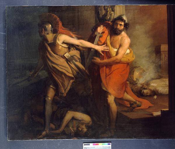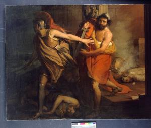 Diomede e Ulisse fuggono dopo il furto del Palladio. Diomede ed Ulisse trafugano il palladio
