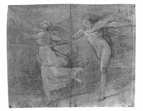 - NOTIZIE STORICO CRITICHE Il disegno è uno studio per un'opera avente come tema "Apollo e Dafne". Tale soggetto trova un riscontro nel medesimo episodio delle "Storie di Apollo" dipinto ad affresco dall'Appiani nel Palazzo del conte G. Sannazzaro, in cui però il tema è risolto in modo diverso. Dalle fonti sappiamo che questo soggetto venne trattato dall'artista anche in quadri ad olio di piccole dimensioni, da cui l'ipotesi che questo studio possa riferirsi ad esso o, comunque, essere una variazione su un tema a cui lavorava in quegli anni, proponendo più soluzioni. Il disegno faceva parte della collezione privata Vallardi, che raccolse in un album di formato atlantico ben 344 disegni di Appiani. L'album pervenne all'Accademia di Brera nel 1875 per donazione di E. Cernuschi, allora residente a Parigi dove lo acquistò nel 1856-1860 (periodo in cui a Parigi si tenero aste di vendita di opere di provenienza Vallardi).