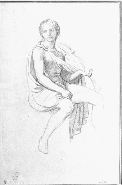- NOTIZIE STORICO CRITICHE Il disegno è lo studio della figura di Apollo per l'affresco rappresentante "La contesa fra Apollo e Marsia". L'opera faceva parte di un ciclo dedicato alle storie di Apollo ed eseguito tra il 1795 e il 1796 e ripreso, per essere concluso, nel 1800 nel palazzo del conte Sannazzaro. Nel 1814 il palazzo, dimora del Ministro delle Finanze Prina, venne assalito e gli affreschi danneggiati, per cui si decise di staccarli e portarli a Brera (attualmente in deposito a Palazzo Morando).\n\nAl verso, studio delle figure di Apollo e Giacinto, le storie di Apollo ed eseguito tra il 1795 e il 1796 e ripreso, per essere concluso, nel 1800 nel palazzo del conte Sannazzaro. Nel 1814 il palazzo, dimora del Ministro delle Finanze Prina, venne assalito e gli affreschi danneggiati, per cui si decise di staccarli e portarli a Brera (attualmente in deposito a Brera).