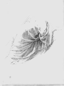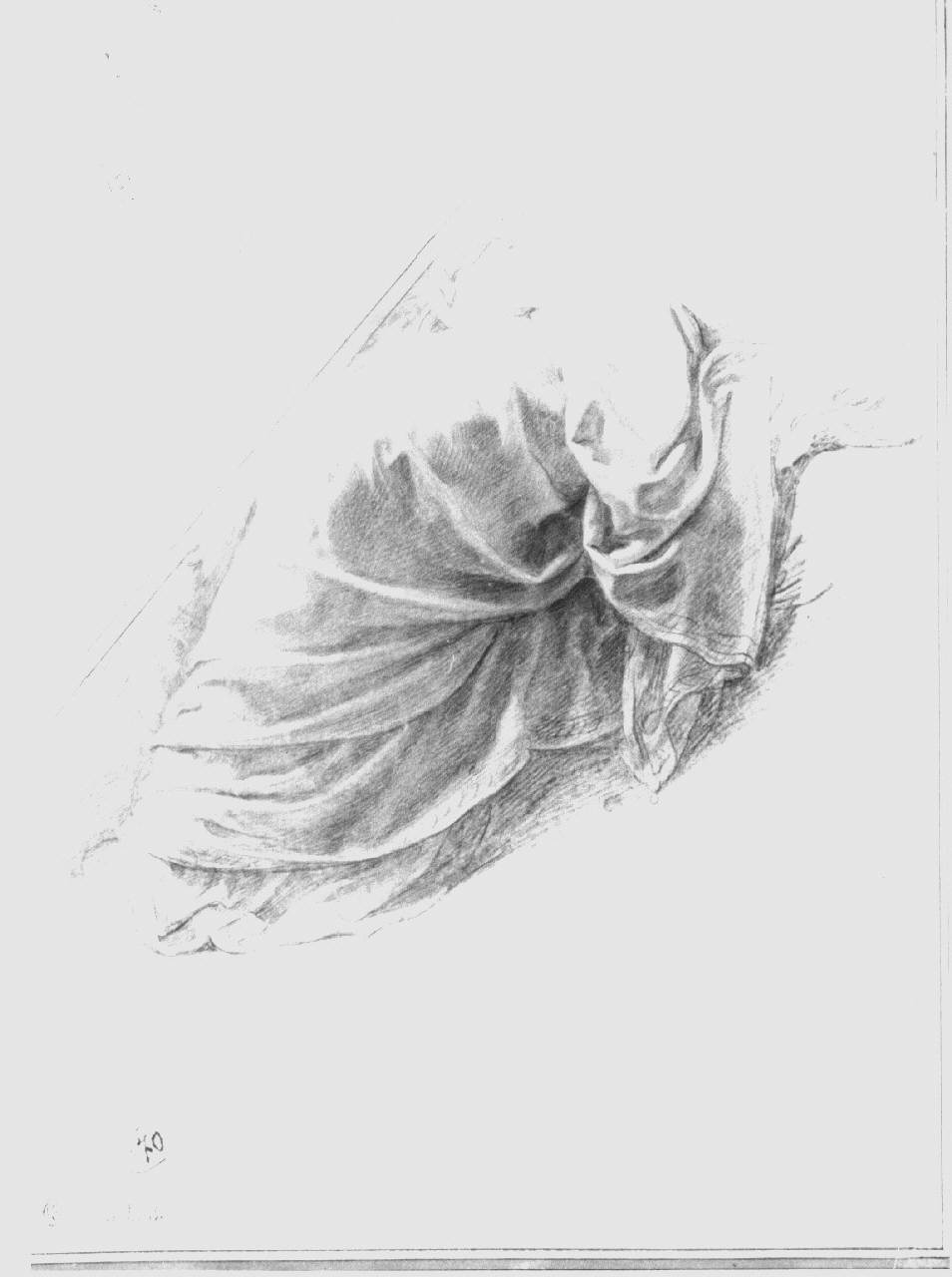- NOTIZIE STORICO CRITICHE Il disegno è uno studio del panneggio di una figura maschile seduta (probabilmente una divinità). Non è facile identificare l'opera di riferimento, ma stilisticamente è affine agli studi per gli affreschi di Palazzo Reale ideati da Appiani tra il 1808 e il 1810 e, soprattutto, a quelli per "Minerva mostra a Clio lo scudo istoriato".