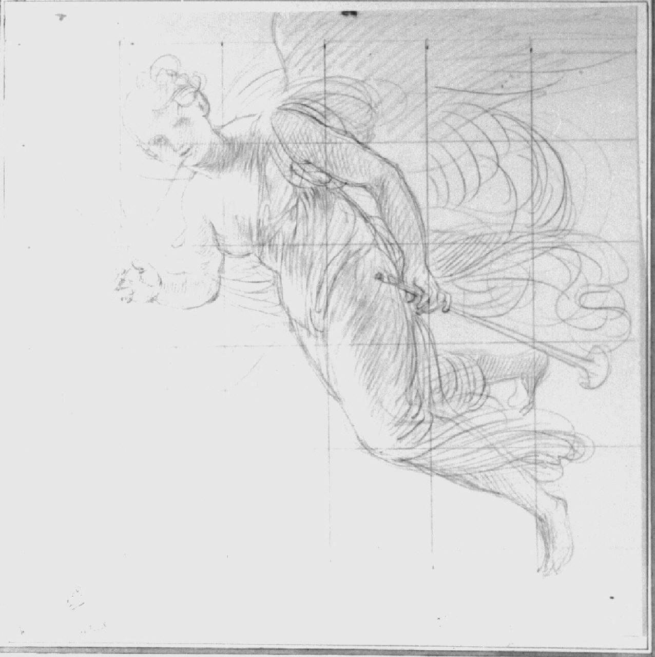 - NOTIZIE STORICO CRITICHE Il disegno è lo studio della Fama per l'affresco "Minerva mostra a Clio lo scudo istoriato", eseguito da Appiani nel 1809 nella Sala delle Udienze Solenni (prima del 1814 "Dei Principi") di Palazzo Reale a Milano.\n\nAl verso, altro studio per la stessa figura presente al recto. La soluzione non è stata adottata per la realizzazione dell'affresco.