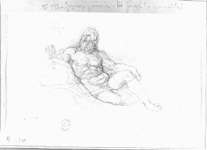 - NOTIZIE STORICO CRITICHE Probabilmente il disegno è uno studio per la figura del fiume Po raffigurato nell'episodio della "Convenzione di Alessandria", del ciclo dei "Fasti napoleonici". Il fiume è personificato secondo i modelli dell'antica statuaria romana, diffussi ampiamente tramite le stampe. Tale soggetto era già stato utilizzato da Appiani in molti disegni per le carte intestate della Repubblica Cisalpina e, in particolare nel disegno per la medaglia commemorativa del "Passaggio del Tagliamento e presa di Trieste" (1798 ca.), di cui questo disegno potrebbe anche rappresentarne uno studio.