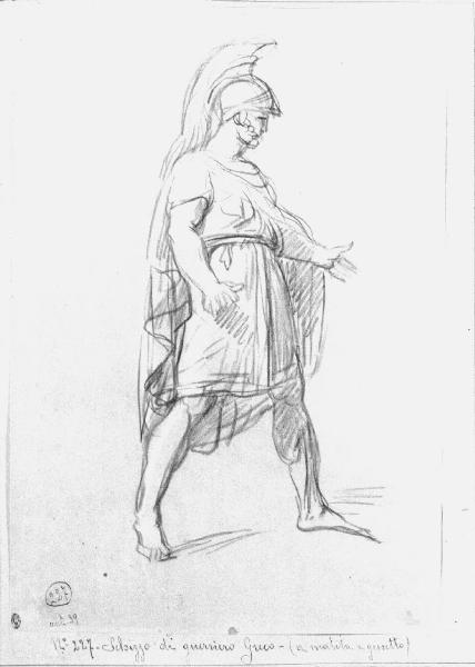 - NOTIZIE STORICO CRITICHE Il disegno è lo studio del soldato a sinistra della composizione storica "Veturia e Coriolano", ideata da Appiani per decorare la Sala della Lanterna di Palazzo Reale ma non eseguita per l'ictus che colpì l'artista nel 1813. Dell'episodio rimane un'incisione tratta dal disegno preparatorio e alcuni studi.