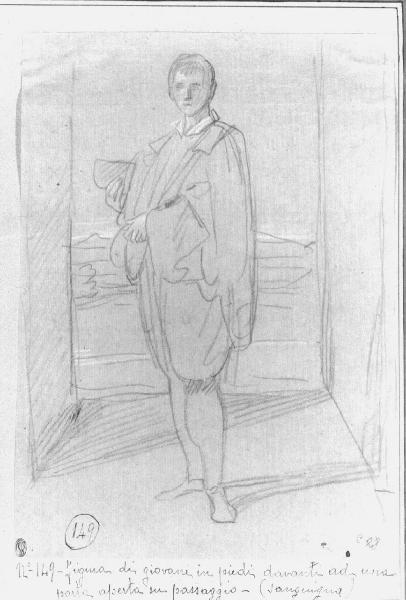 - NOTIZIE STORICO CRITICHE Il disegno è una copia dell'autoritratto del Domenichino (Darmstad Museo). Potrebbe trattarsi di uno studio eseguito durante il viaggio di Appiani nel 1791 che lo portò a Parma, Bologna, Firenze, Roma e Napoli. Anche lo stile confermerebbe questa datazione. Secondo Fusconi G. Canevari A. si tratta di una copia grafica che l'artista trae dal "Ritratto di giovane" eseguito a Roma dallo Zampieri nel 1603. Non è possibile sapere se l'Appiani eseguì a Roma la copia del ritratto, che comunque riprese dal vero, come dimostrano i vari tocchi di gessetto bianco che corrispondono ai punti luce del dipinto.\n\nAl verso schizzo di testa maschile.