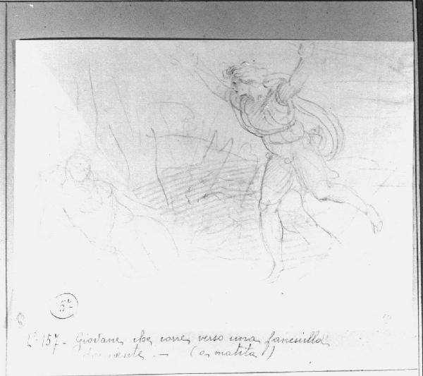 - NOTIZIE STORICO CRITICHE Il tema sembrerebbe derivare dall'ambito mitologico-letterario e raffigura un giovane in atto di sorprendere una fanciulla, probabilmente morta. Non si conosce l'opera eseguita di riferimento. Il tema, di carattere amoroso, e lo stile datano il disegno all'ultimo decennio del XVIII secolo.
