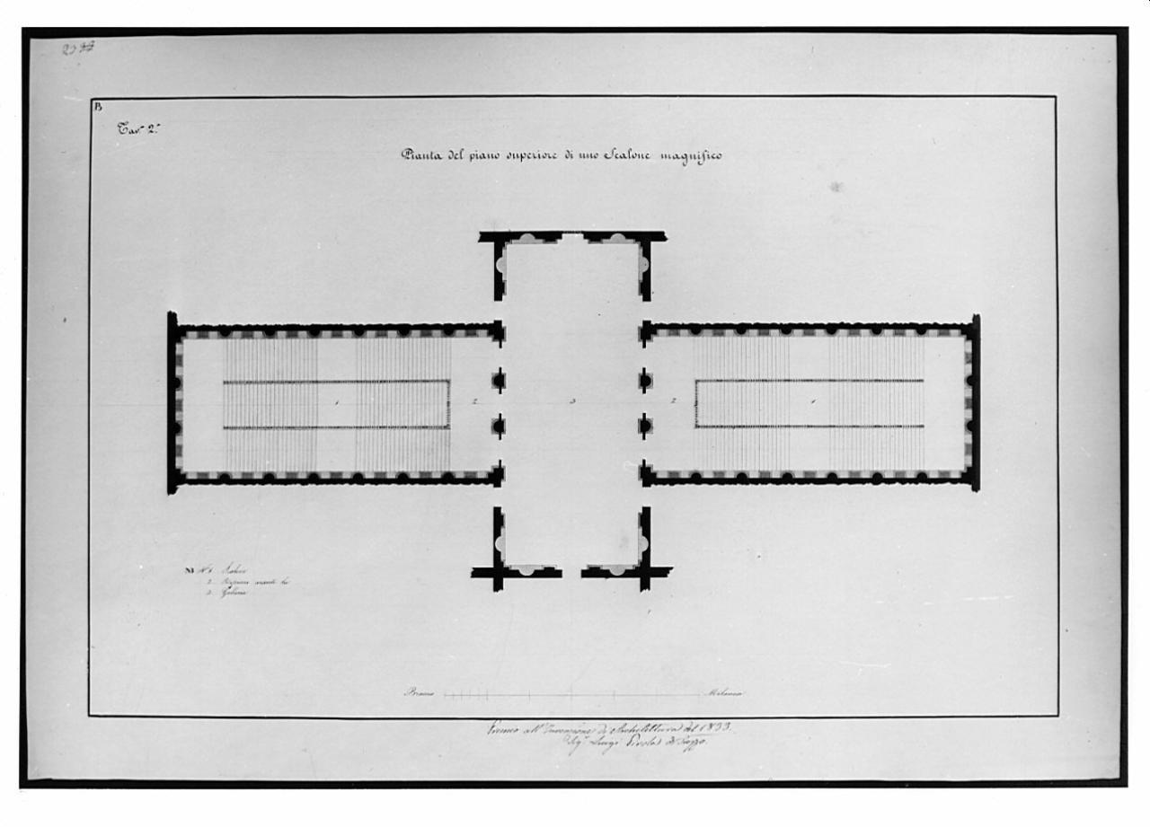 Progetto di uno scalone magnifico per palazzo principesco. architettura: scaloneper palazzo principesco (pianta del piano superiore)