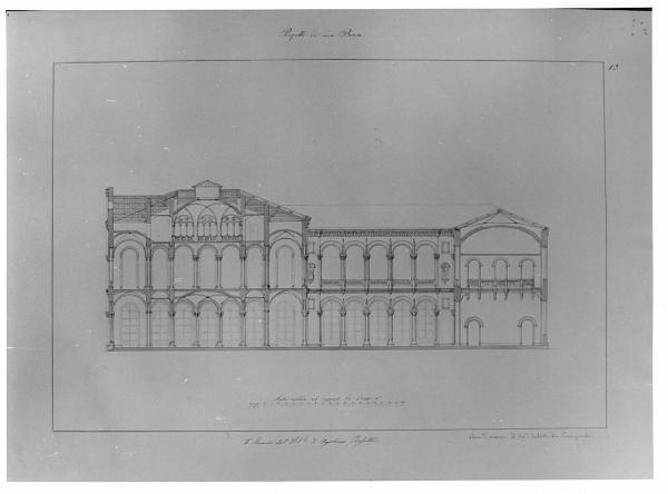 - NOTIZIE STORICO CRITICHE Appartiene ad una serie di 4 tavole presentate da Agostino Rosselli al concorso di II classe per l'invenzione del 1856. La tavola è conservata nella cartella A I 194, contenente i saggi premiati ai concorsi di II classe della scuola di Architettura della Accademia di Brera.