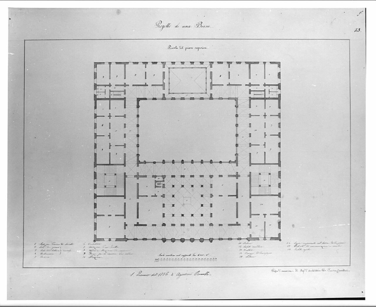 - NOTIZIE STORICO CRITICHE Appartiene ad una serie di 4 tavole presentate da Agostino Rosselli al concorso di II classe per l'invenzione del 1856. La tavola è conservata nella cartella A I 194, contenente i saggi premiati ai concorsi di II classe della scuola di Architettura della Accademia di Brera.