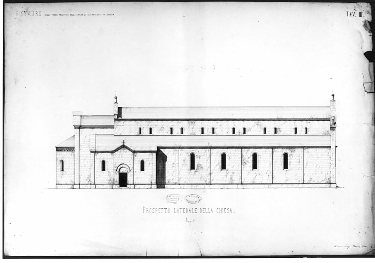 Ristauro interno ed esterno della chiesa di San Francesco di Brescia. architettura: chiesa di San Francesco a Brescia (prospetto laterale)