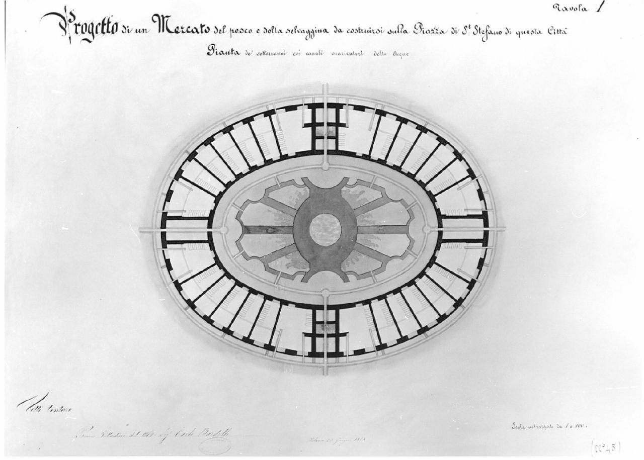 Mercato del pesce e della selvaggina da costruirsi sulla piazza S. Stefano. architettura: mercato del pesce e della selvaggina (pianta dei sotterranei)