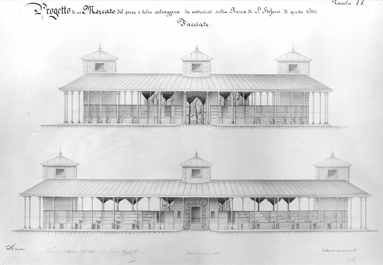 Mercato del pesce e della selvaggina da costruirsi sulla piazza S. Stefano. architettura: mercato del pesce e della selvaggina (prospetti)