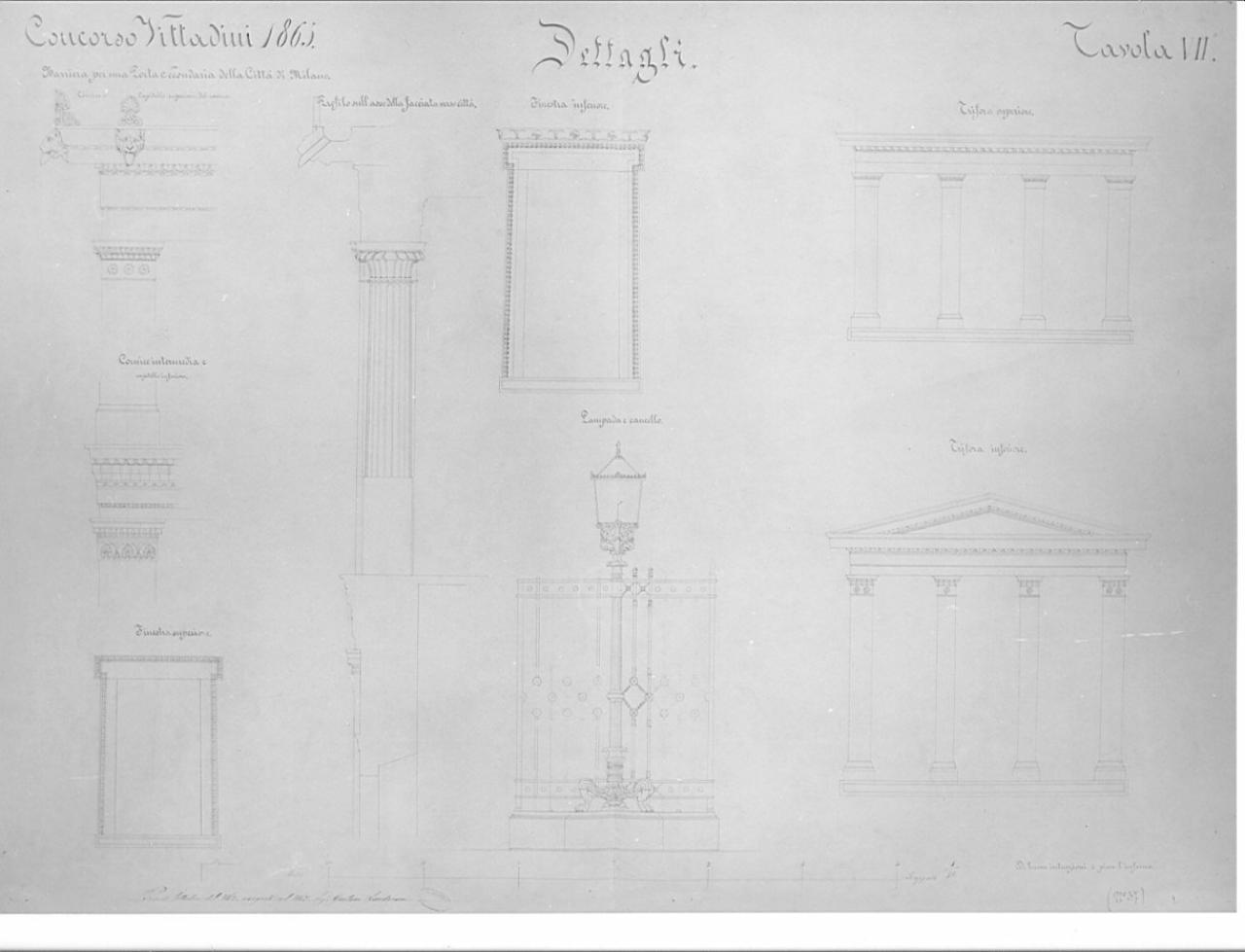 Progetto per edificio per decorare la barriera daziale di Milano a P.ta Vittoria. architettura: barriera daziaria a Milano (dettagli)