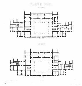 - NOTIZIE STORICO CRITICHE L'elaborato appartiene ad una serie di tavole di Pio Soli realizzate in occasione del Concorso Vittadini pubblicato il 10 novembre 1871 (ma riferibile all'anno 1869) relativo all'"alzamento del fabbricato denominato il Palazzo di Giustizia.. in modo da potervi insediare benanche gli uffici dellaPretura di mandamento" (Atti.., 1871, p. 55). Il progetto contrassegnato dall'epigrafe " Cesare Beccaria" è stato premiato dal Consiglio Accademico del 1872 "per lo studio della pianta pel concetto generale, pel carattere delle parti decorative" (Atti.., 1872, pp. 95-96)