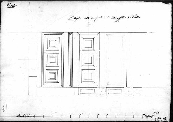 - NOTIZIE STORICO CRITICHE Il disegno fa parte di una serie di 6 tavole relative ad un progetto presentato come prova d'accesso alla pensione romana nel 1815 (?).\nE' conservato nella cartella 12 che raccoglie numerosi saggi di concorsi di I classe della scuola di architettura destinati ad essere restituiti agli allievi e progetti diversi.