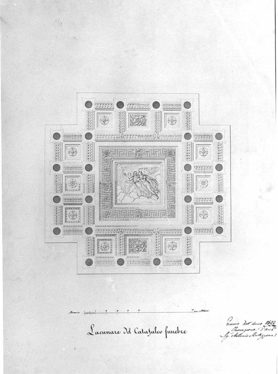 Progetto di un catafalco funebre. architettura: catafalco funebre (lacunari)