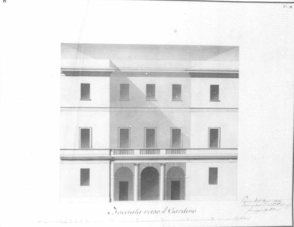 Progetto di una casa civile (facciata verso giardino). architettura: casa civile (facciata verso il giardino-ortografia)