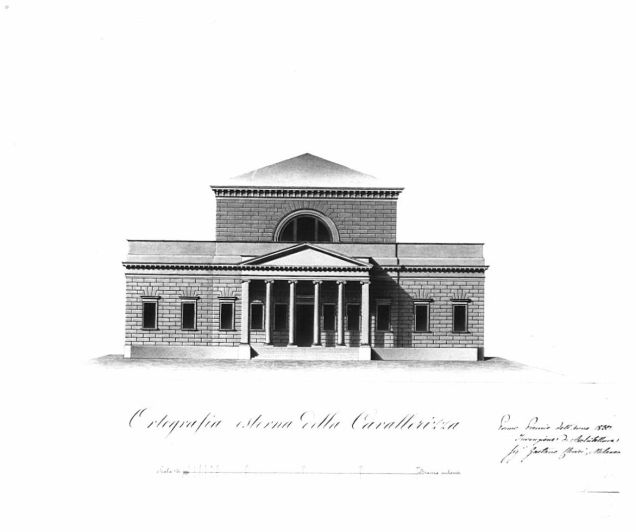- NOTIZIE STORICO CRITICHE Fa parte di una serie di disegni presentati da Gaetano Clerici all'Accademia di Belle Arti di Brera per il concorso di architettura di seconda classe nel 1830 (Atti...1830, p. 39).