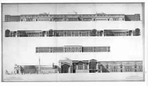 Un Palazzo Reale per una Città in pianura proporzionato alla dignità e al regolare servizio di una corte cospicua, ed all'alloggio contemporaneo di più d'una Testa Coronata. Lo stile dell'architettura sarà dei migliori tempi Greci e Romani. architettura: palazzo reale (prospetti e sezioni)