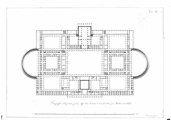Una casa di ritiro per militari e invalidi capace di 1500 soldati comuni e 300 ufficiali. architettura: casa di ritiro per militari invalidi (pianta del primo piano)