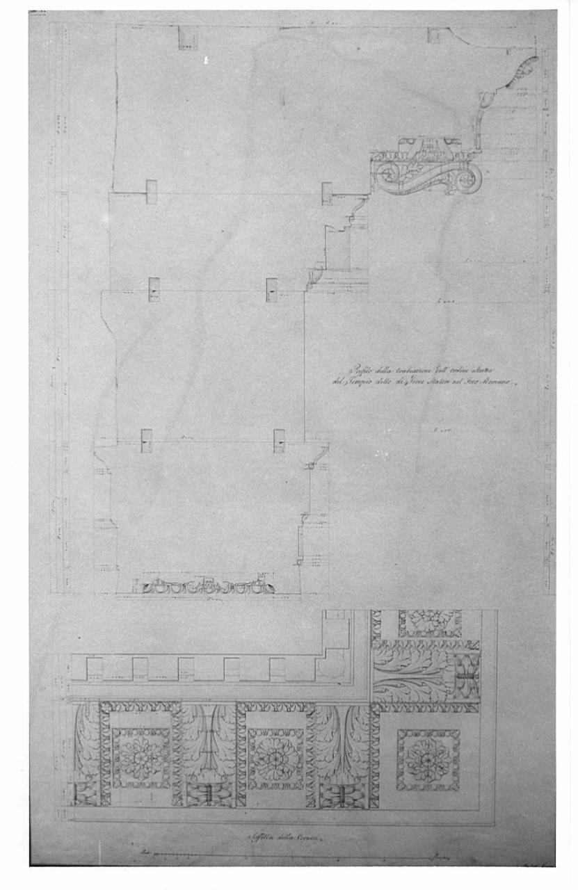 Progetto di ristauro del Tempio di Giove Statore. architettura: Tempio di Giove Statore (particolari della trabeazione)