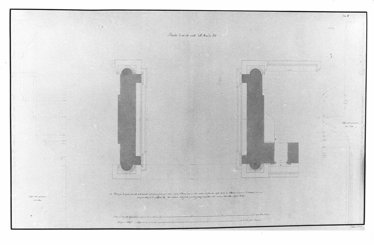 - NOTIZIE STORICO CRITICHE Il disegno appartiene ad una serie di 6 tavole redatte da Gaetano Besia come saggio del primo anno di pensionato a Roma tra il 1809 e il 1810, ed esposto a Brera nel 1810 (ESposizione annuale dell'Accademia; Atti della R. Accademia di Milano, p. 69). Gaetano Besia aveva vinto il II premio per gli ordini architettonici nel concorso di seconda classe del 1808 (Atti..., 1808, p. 54). Ottenne la pensione triennale a Roma nel 1809. Ottenne la pensione triennale a Romanel 1809. Tornato a Milano nel 1813, fu assistente di Zanoja, professore a Treviso ed infine ancora a Milano dove, dal 1830, entrò a far parte delle commissione d'ornato sostituendo Giocondo Albertolli. Nel 1851 divenne direttore della scuola di architettura dell'Accademia di Milano. Il disegno è rilegato nel volume A I 189 contenente vari saggi di pensionato romano tra il 1810 e il 1817.