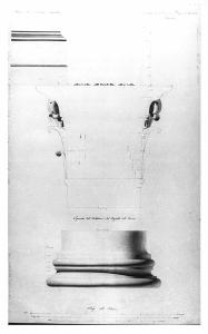 - NOTIZIE STORICO CRITICHE Il disegno appartiene ad una serie di 7 tavole redatte da Giacomo Bianconi probabilmente nel 1805 come saggio del primo anno di pensionato a Roma. Nato a Milano egli studiò lettere, scienze pure e architettura, frequentò l'Accademia di Belle Arti di Brera vincendo due volte nei concorsi di I e II classe. Nel 1804 ottenne la borsa di studio, di quattro anni, per il soggiorno romano. Fu disegnatore presso lo stato maggiore militare del genio italiano e smise l'attività quando partì per Roma. Negli anni di pensionato inviò a Brera i saggi di fine anno e numerosi altri lavori elogiati dal Ministro degli Interni e dal Senato Accademico. Ciò gli consentì di ottenere un ulteriore assegno per compiere un giro scientifico in altre città italiane. Tornato a Milano divenne, nel 1810, professore di architettura all'Accademia Carrara di Bergamo. Negli anni successivi ottenne varie cariche onorifiche e operò in area lombarda (cfr. Francesco Ponzoni "Cenni biografici intorno al fu Giacomo Bianconi...", Milano 1858).
