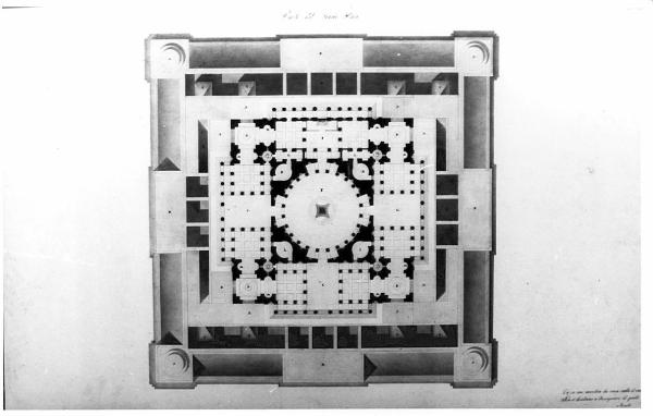 Un grandioso mausoleo di greca architettura da collocarsi isolato in una vasta pianura. architettura: mausoleo (pianta)
