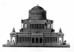 Un grandioso mausoleo di greca architettura da collocarsi isolato in una vasta pianura. architettura: mausoleo (prospetto)