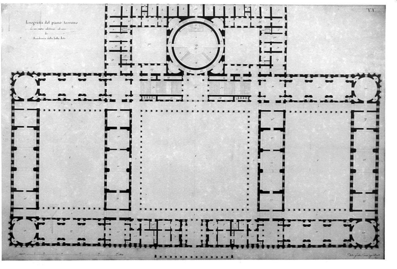 Vasto e maestoso edifizio ad uso di Accademia di belle arti da erigersi in un'area non maggiore di 24000 mq. architettura: Accademia di Belle Arti (pianta)