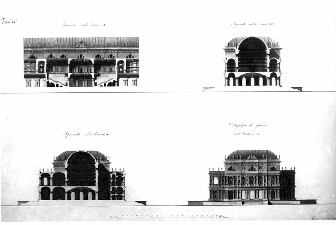 Pubblico archivio per una città capitale. architettura: Archivio Pubblico (prospetto e sezione)