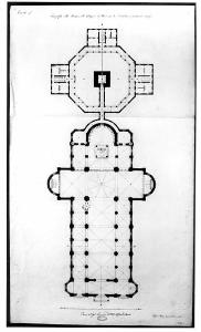 Una chiesa parrocchiale cui siano annesse le abitazioni del parroco... erette nello stile dell'architettura italiana del XIII secolo. architettura: chiesa (pianta)