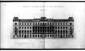- NOTIZIE STORICO CRITICHE La tavola appartiene alla serie di 11 disegni presentati dall'allievo Gian Vincenzo Cappelletti al Concorso Canonica del 1871. Il progetto fu premiato per la razionalità delle piante anche se criticato per "l'incerto stile delle decorazioni". (Giudizi dei concorsi in "Atti", 1872, pp. 24-26).