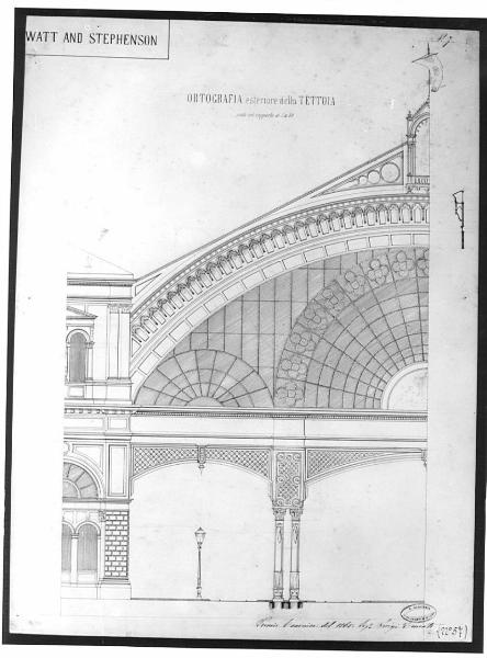 Stazione di prima classe, intermedia ad una grande linea di strada ferrata. architettura: stazione di prima classe (prospetto esterno della tettoia)
