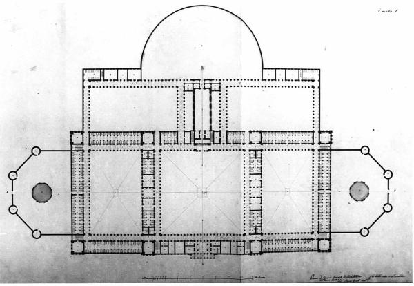 Una caserma ad uso di cavalleria per 6000 cavalli. architettura: caserma ad uso di cavalleria (pianta)