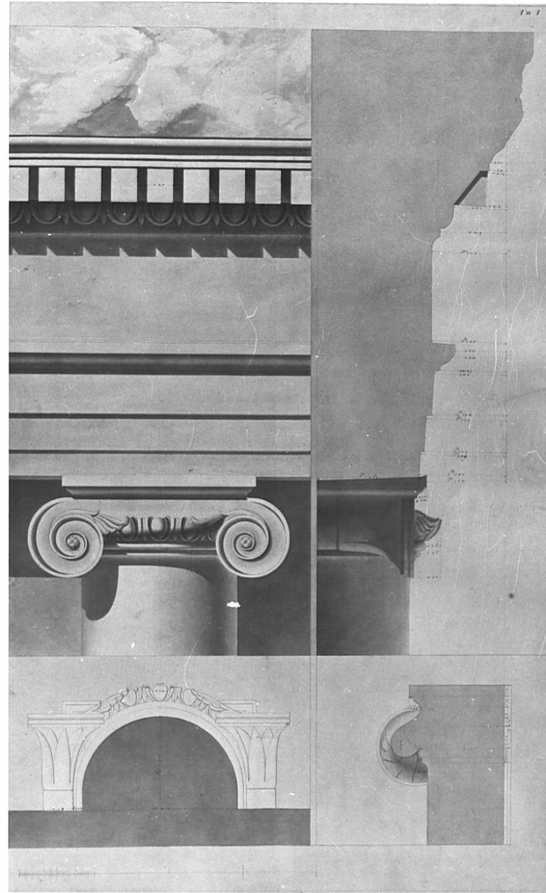 Studi sugli avanzi degli ordini del Teatro di Marcello. architettura: Teatro Marcello a Roma (trabeazione ionica)