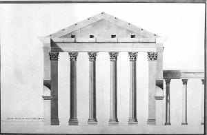 - NOTIZIE STORICO CRITICHE Appartiene alla serie di 8 tavv. Raffiguranti rilievi dei portici di Ottavia a Roma, disegnate da Giuseppe Bovara, pensionato del secondo anno del Governo a Roma e da lui spedite all'Accademia di Belle Arti di Brera nel 1809, quindi esposte al pubblico (Discorsi¿, 1809, p. 65). Giuseppe Bovara consegue anche i pensionati del 1808 e del 1810, come conferma anche la scritta incisa in oro sul dorso della cartella entro la quale si trovano rilegate queste tavole (Saggi del Pensionato Bovara/ 1808/ 1809/ 1810/ 1811)