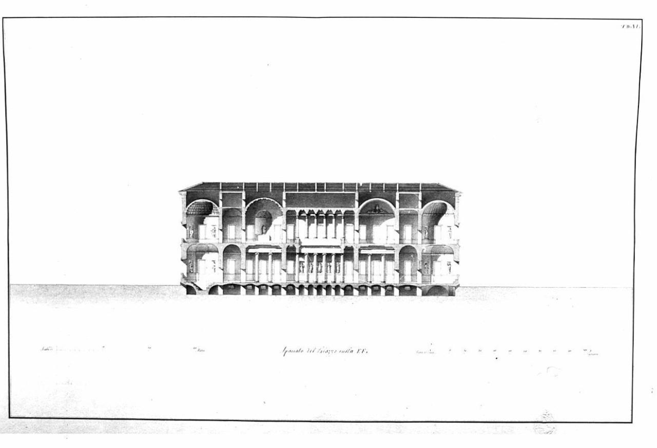 Progetto di palazzo per un ricco signore. architettura: Palazzo di città (sezione)