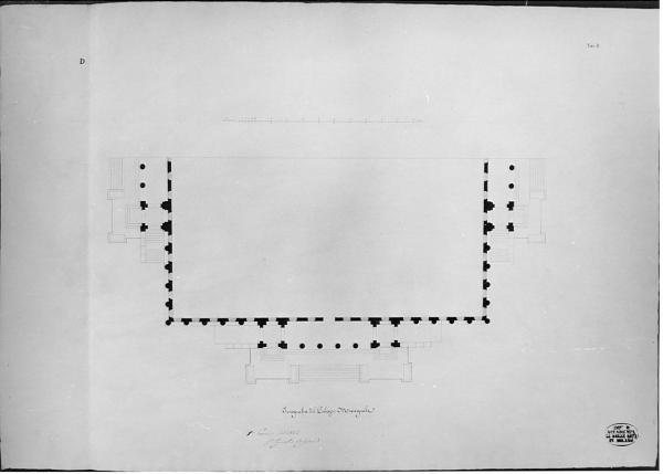 - NOTIZIE STORICO CRITICHE E' la seconda delle due tavole presentate da Cornelio Calzini al Concorso di II classe per l'invenzione del 1842. La tavola è conservata nella cartella A I 194 contenente i saggi dei concorsi di Architettura di II classe.