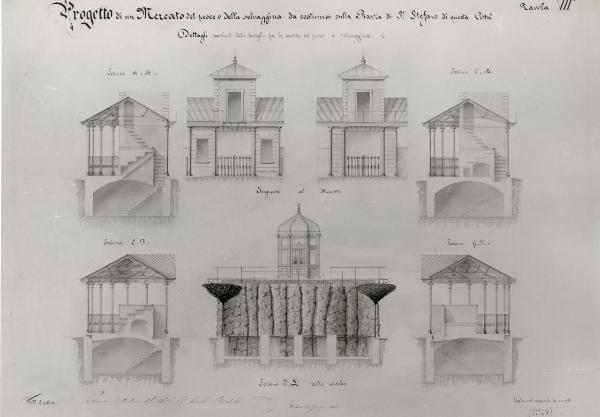Mercato del pesce e della selvaggina da costruirsi sulla piazza S. Stefano. architettura: mercato del pesce e della selvaggina (sezioni)