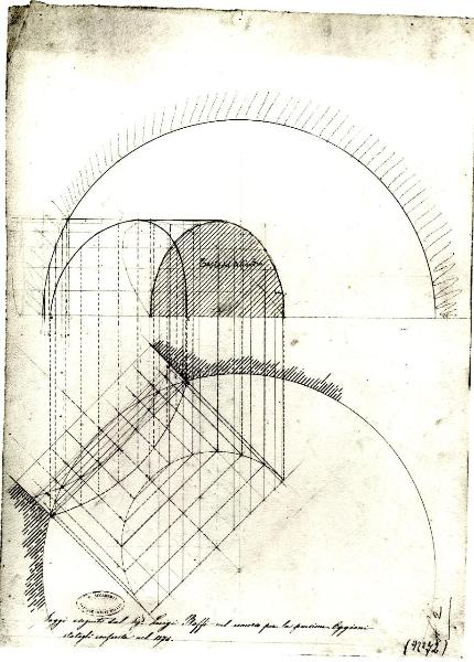 Intersezione tra una cupola emisferica e una lunetta di un arco semicircolare. architettura: cupola e lunetta (pianta e spaccato)