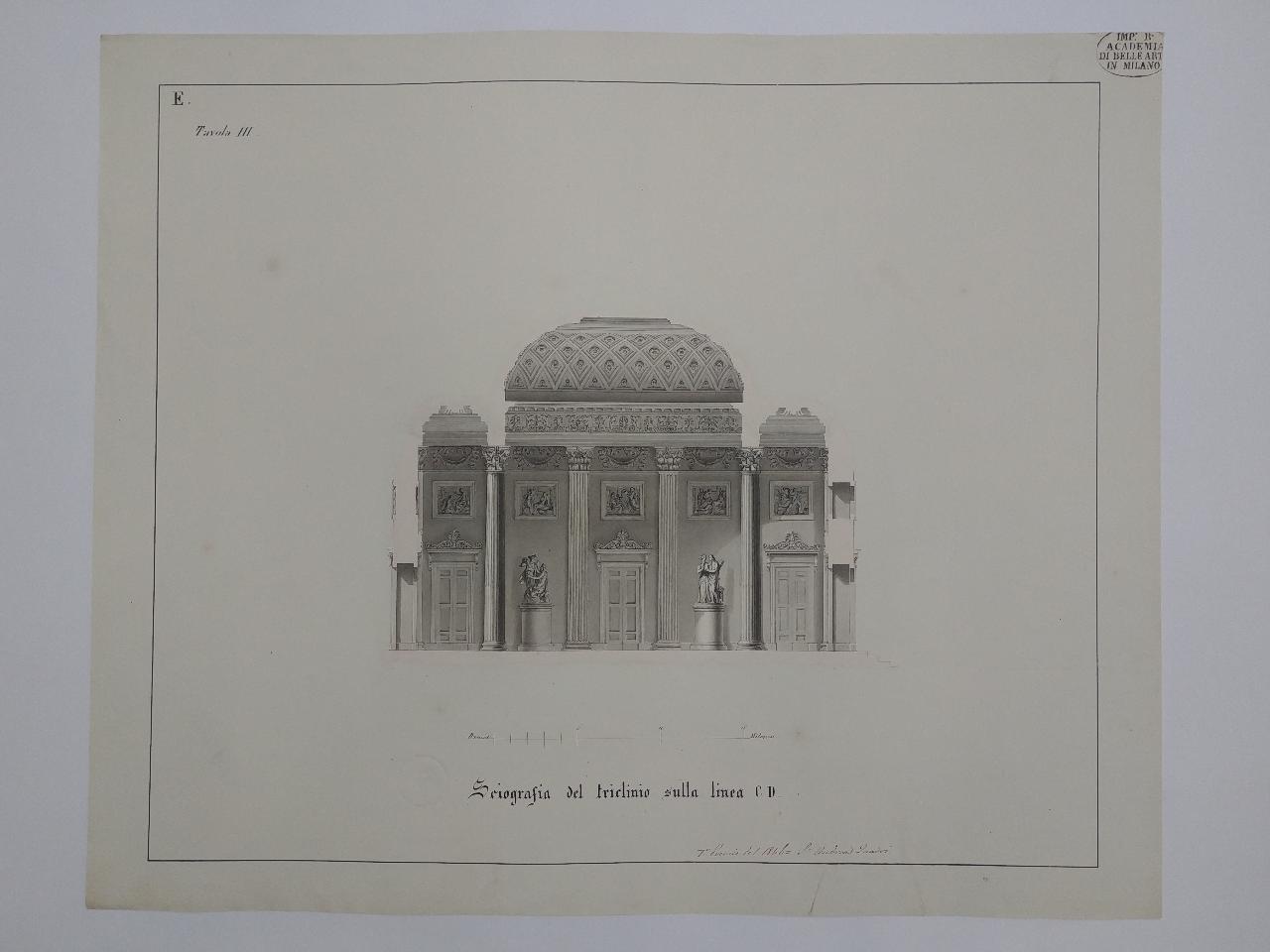 Progetto di un triclinio per 50 commensali. architettura: Triclinio (sezione longitudinale)