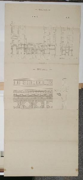 Nuovo palazzo formante il lato di fondo della piazza del Duomo e da costruirsi sull'area disegnata nel tipo annesso al programma. architettura: edificio per piazza Duomo (sezioni e dettagli)