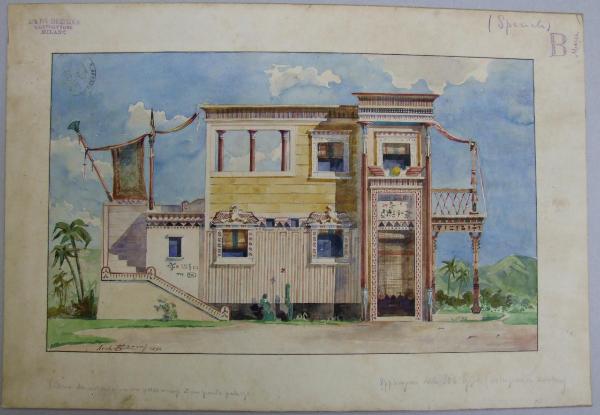 Villino da costruirsi in un parco annesso ad un grande palazzo (Stile egizio. Prospetto frontale). villino