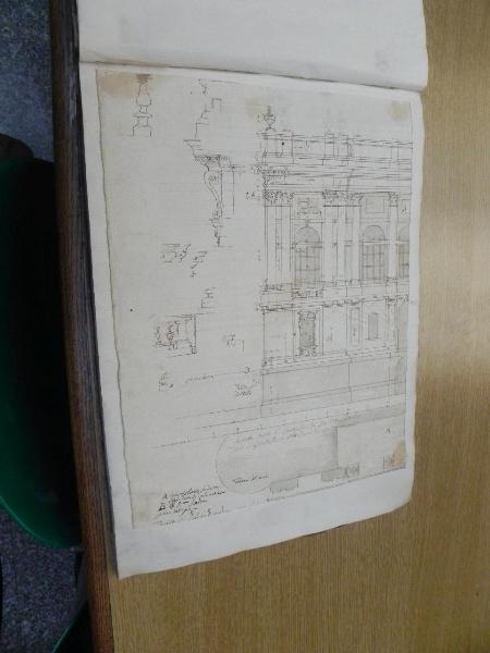 - NOTIZIE STORICO CRITICHE "E' la riproduzione della facciata juvarriana di Palazzo Madama. Fu eretta provvisoriamente nelal parte del palazzo prospiciente l'attuale via Po nel 1750, in occasione delle nozze di Vittorio Amedeo di Savoia con Antonia di Spagna. Il disegno è di mano di Fabrizio, che risulta, anche da documenti, l'autore di questo lavoro" (Viale Ferrero).