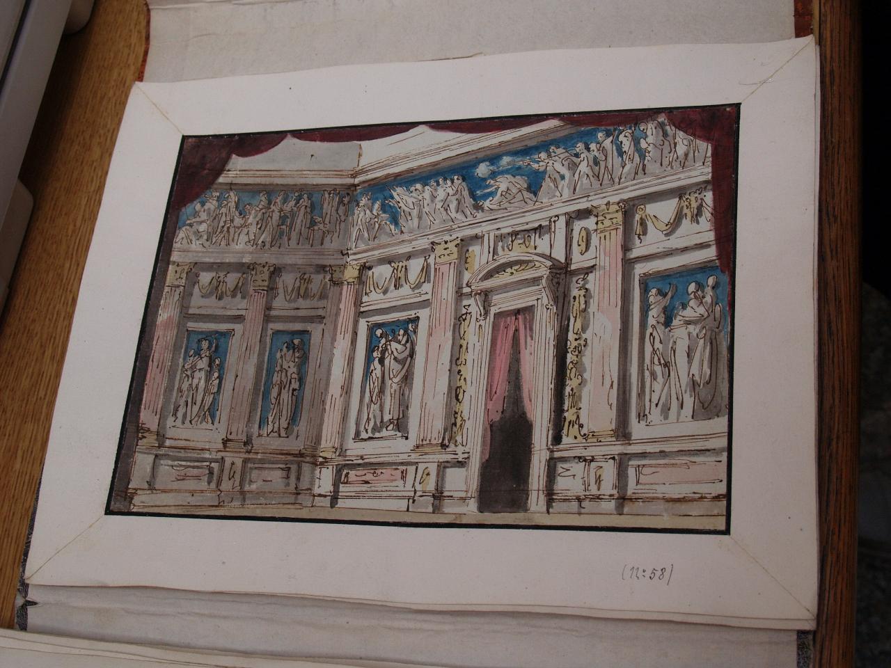 - NOTIZIE STORICO CRITICHE I disegni contenuti nella cartella K I 23 recano il titolo "Galliari Decorazioni teatrali a colore". Lo stile suggerisce di attribuirli a Gaspare e alla sua attività milanese collocata tra il 1801 e il 1823. Alcuni disegni collocati in passepartout recano una didascalia, recente ma anonima, che li attribuisce esplicitamente a Gaspare.