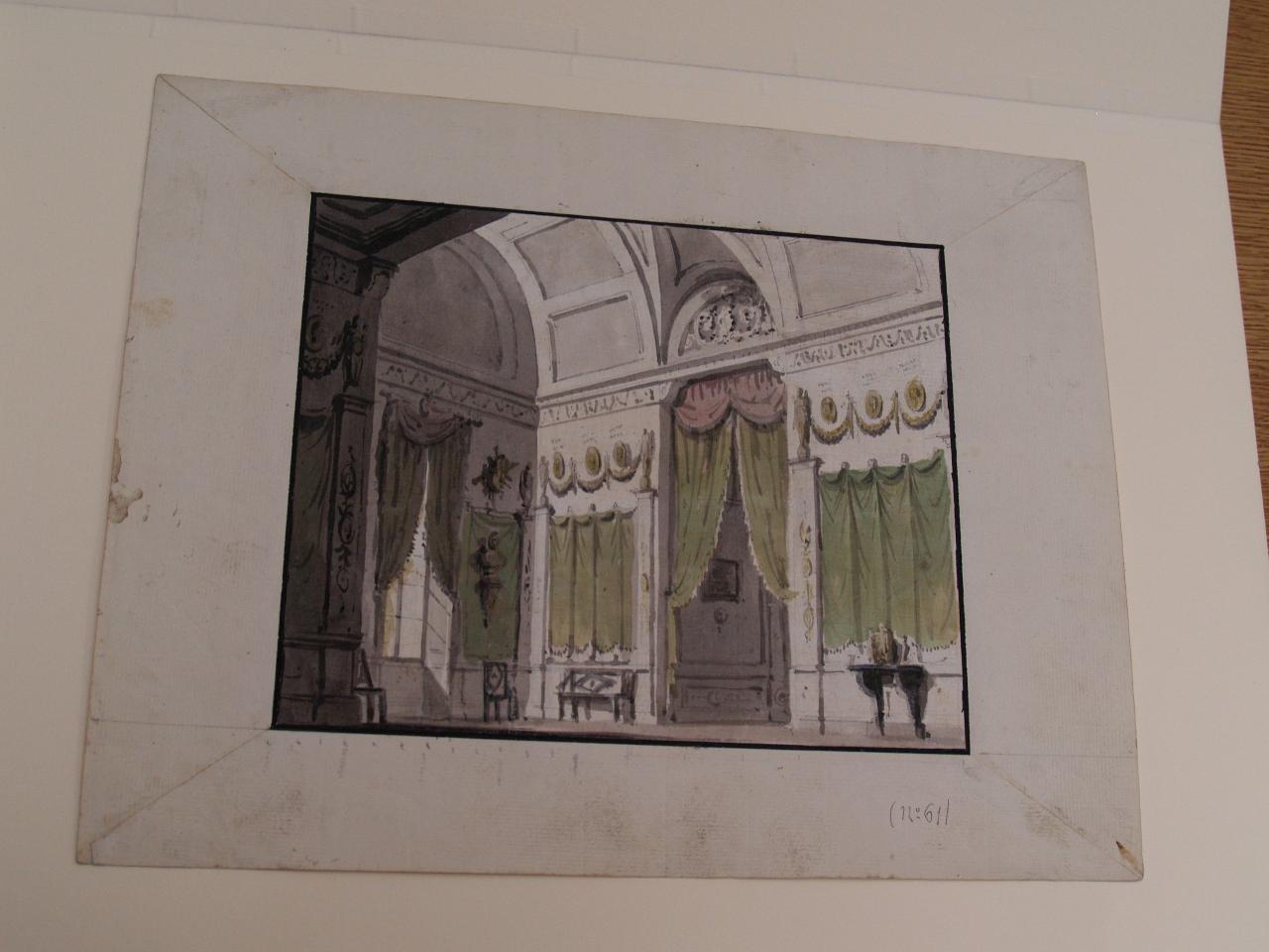- NOTIZIE STORICO CRITICHE I disegni contenuti nella cartella K I 23 recano il titolo "Galliari Decorazioni teatrali a colore". Lo stile suggerisce di attribuirli a Gaspare e alla sua attività milanese collocata tra il 1801 e il 1823. Alcuni disegni collocati in passepartout recano una didascalia, recente ma anonima, che li attribuisce esplicitamente a Gaspare.
