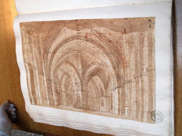 Sotterraneo gotico. Sotterraneo gotico; grosso pilastro centrale con urna; nicchie sul fondo.
