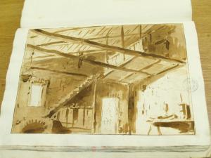 - NOTIZIE STORICO CRITICHE "Molto tardo" (Viale Ferrero 1963).\nIl disegno fa parte dell'album "K I 18" recante la scritta "N.9 Rovine Porti di Mare Città esterne Sepolcri e Camere rustiche d'Invenz. di Gio. Galliari in n.o 73". Come per l'album K I 17, questa scritta sembrerebbe successiva ai disegni. Viale Ferrero (1963) precisa che " l'indicazione 'Gio. Galliari' non è esatta; né se si riferisce a Giovanni Antonio perché si trovano molti disegni certo posteriori alla sua morte; né se si riferisce a Giovannino perché molti altri disegni sono datati in anni in cui egli era ancora bambino." Il disegno non è attribuito, ma appare molto tardo.